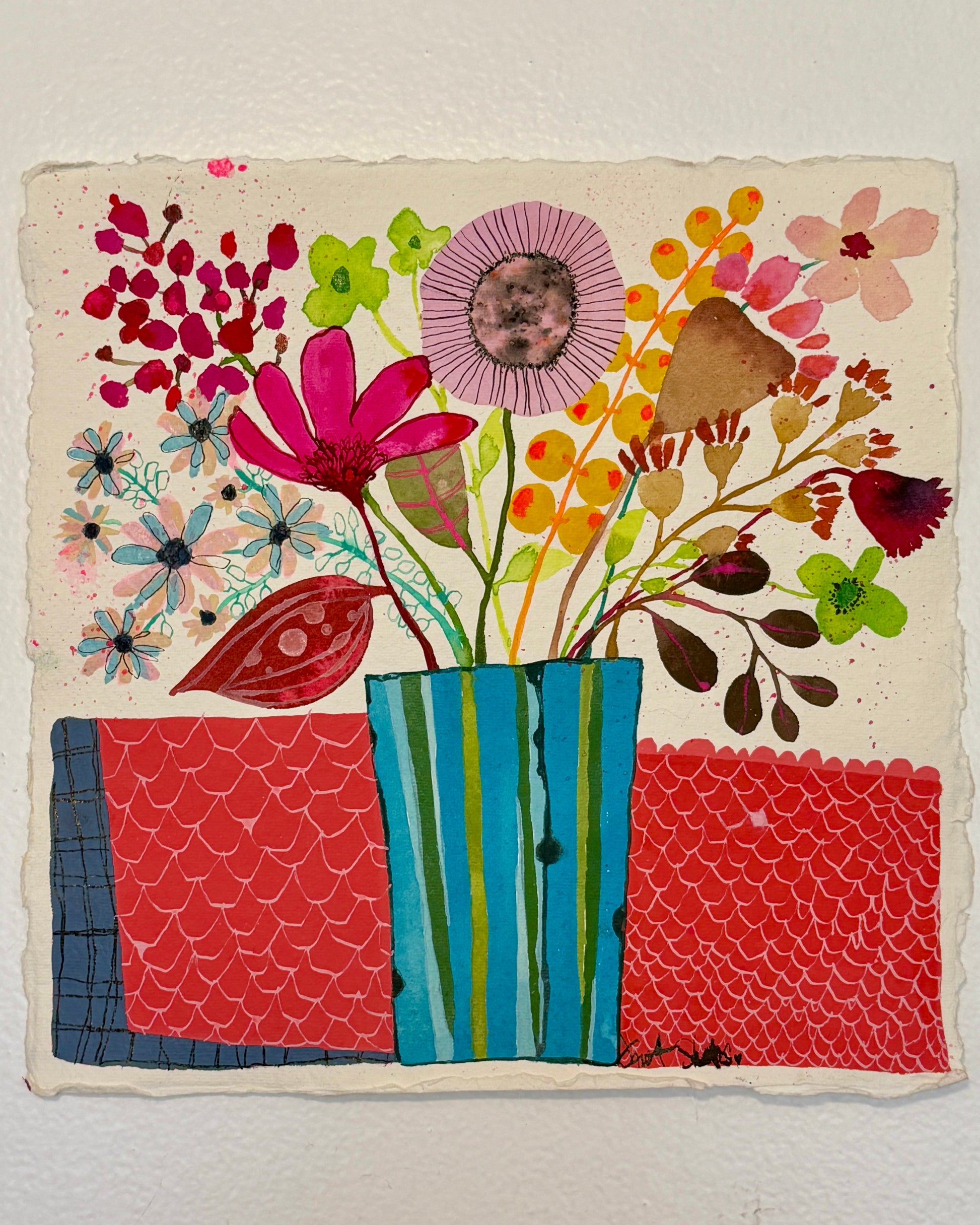 A fantastical one-of-a-kind work in gouache and watercolor on 10” x 10” handmade paper. Signed front and back, this piece ships flat and is ready to frame as desired. For your convenience domestic shipping is included. International clients please drop us an email for purchase and shipping details. We delighted to assist.