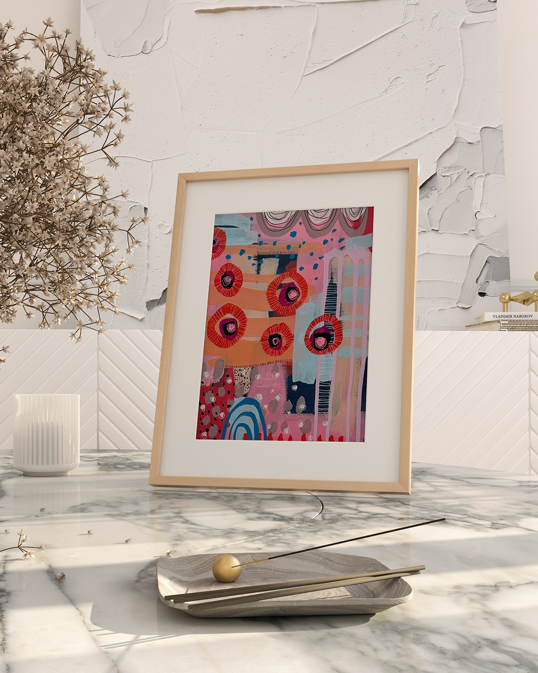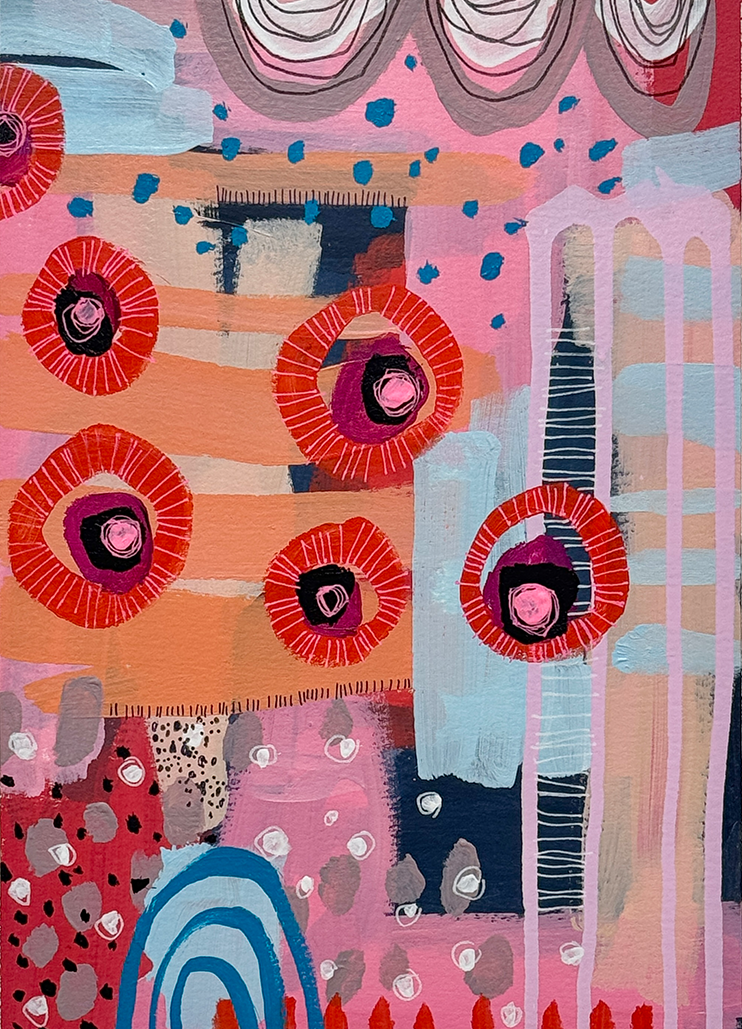 You May Be Dreaming" invites you into a whimsical, dream-like world of vivid color and dynamic patterns. With swirling reds, pinks, and playful shapes, this original painting on Arches paper suggests a sense of joyful fantasy, where reality and imagination blur. The bold red circles and intricate textures create a rhythmic flow that brings the piece to life, encouraging you to pause and embrace the beauty of the unexpected. Perfect for those who appreciate art that sparks the imagination and adds a touch of playfulness to their space.